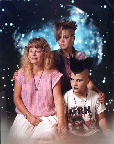 Itulah yang dilakukan keluarga ini. Lihat saja bagaimana si ibu dan kedua anaknya berfoto bak anak band yang hendak memfoto cover album mereka. Bahkan kedua anaknya sudah tampil punk dengan gaya rambut jabrik dan make up kece. Ada yang mau meniru foto keluarga macam seperti ini?